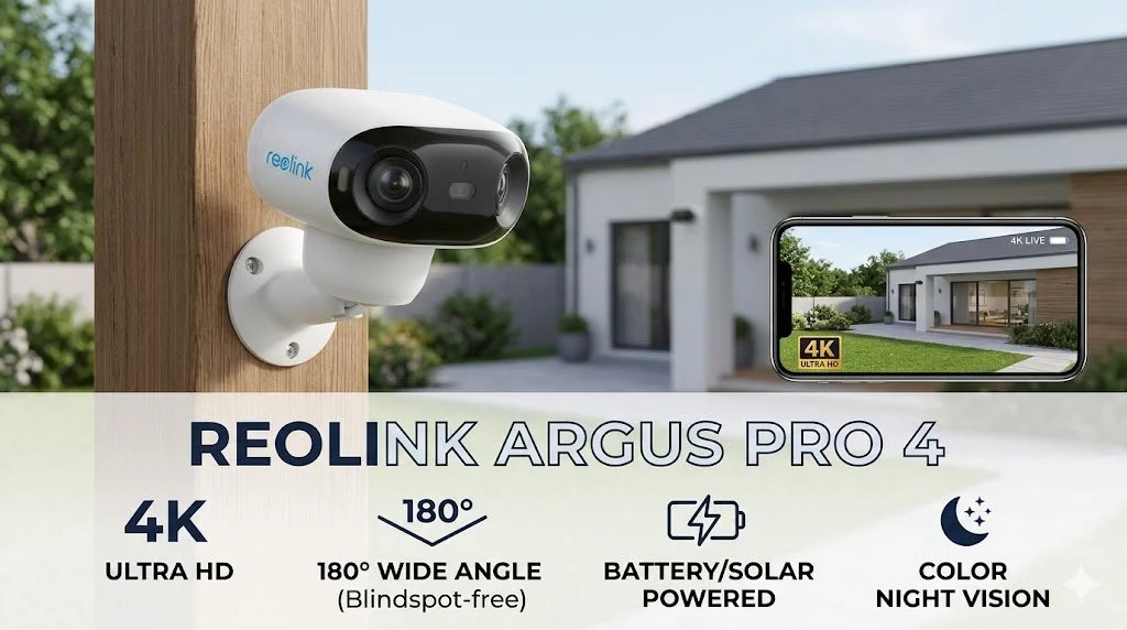 The Elite Performance Pick: Reolink Argus 4 Pro If you have a strong Wi-Fi network and want forensic-grade evidence, this is your winner. With its 180° Panoramic 4K view, you get total property awareness without the blind spots. Because it records directly to a microSD card, your security stays live even if your internet goes down.