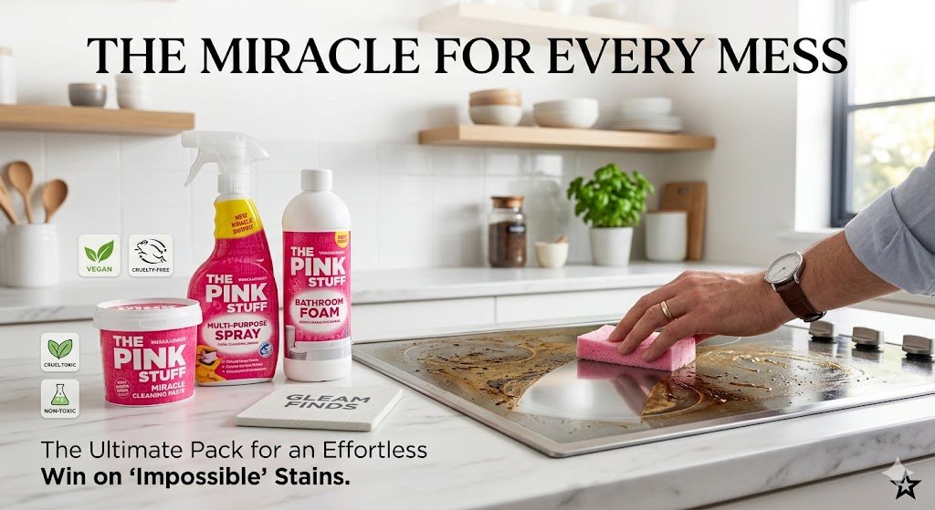 The Stardrops – The Pink Stuff Ultimate Cleaning Pack is built on its reputation for high-impact results on "impossible" stains. To capture the attention of a customer and convert that interest into a sale, the visual content needs to move beyond a simple product shot and emphasize the "miracle" transformation.